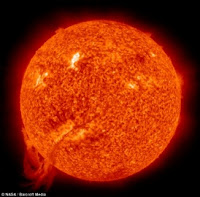 Ular yang dikenal sebagai "solar filament" ini terbakar sepanjang 435 ribu mil atau setara dengan dua kali jarak bumi ke bulan, di bagian selatan. "Solar filament" adalah kumpulan gas padat yang menggantung di atas pemukaan matahari.